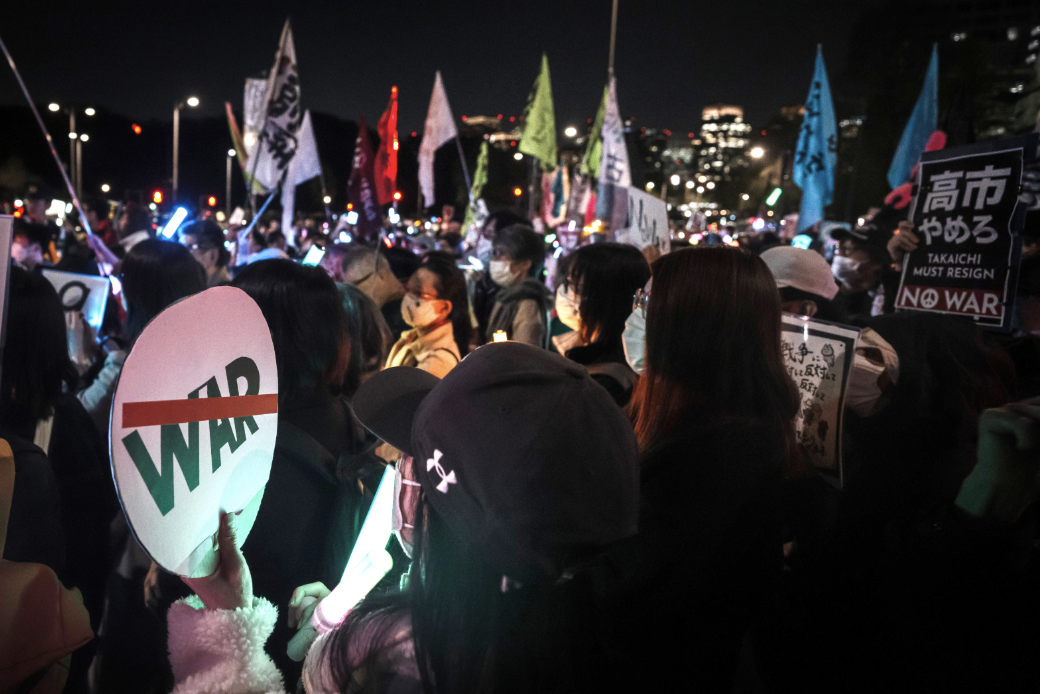 4月8日晚,约3万日本民众在位于东京的国会议事堂前集会,抗议高市早苗政府部署远程导弹、企图解禁杀伤性武器出口等破坏和平宪法的动向。日本全国130多个地点当天也举行类似街头抗议活动。